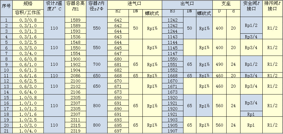 是專(zhuān)門(mén)用于儲(chǔ)存壓縮空氣的壓力容器,主要用于存氣緩沖,同時(shí)起穩(wěn)定系統(tǒng)壓力的作用,避免空壓機(jī)頻繁加卸載和除掉大部分的液態(tài)水,主要與壓縮機(jī)、冷凍式干燥機(jī)、過(guò)濾器等設(shè)備配套使用,組成工業(yè)生產(chǎn)上的動(dòng)力源壓縮空氣站。